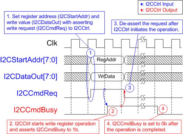 3) I2CCmdReq is then set to 0b to clear the write request and prepares the parameters for the next operation.