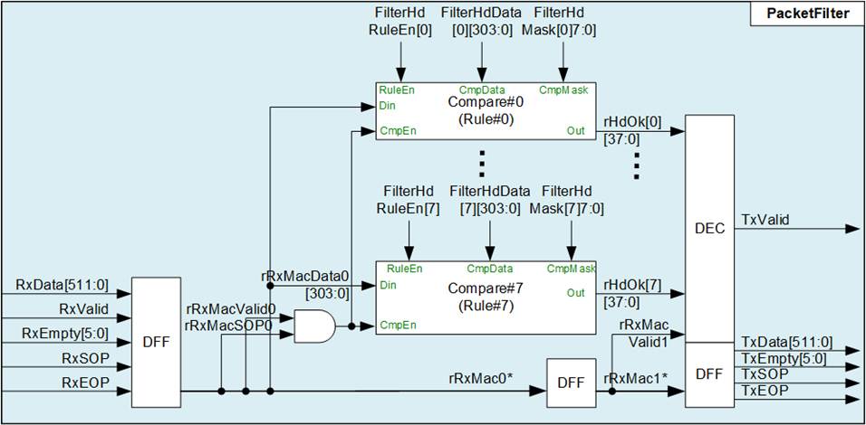 · Packet Filter supports packet header verification using up to 8 configurable rules.
