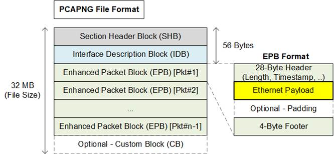 · Each PCAPNG file has a fixed size of 32 MB.