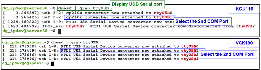 Port selection for running the demo: Use the second port for both KCU116 and VCK190.