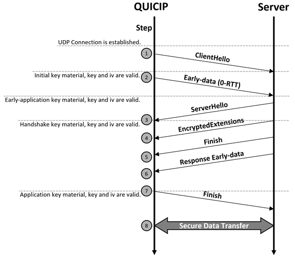QUIC is a cryptographic transport protocol designed to provide a secure and efficient connection between a client and server over the network. Before the development of the QUIC protocol, the TLS protocol was widely used for secure communication, but it depends on the transport protocol, named TCP/IP, for the connection-oriented and reliable data transmission. This dependency limits the performance of the TLS protocol. For this reason, the QUIC protocol was designed and later approved as a standard to provide a secure data transfer protocol and to address the limitations faced by TLS.